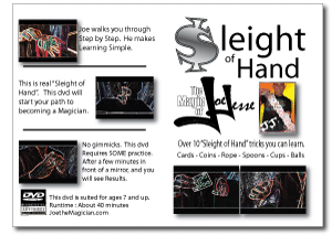 "Thanks Joe Jesse for making Sleight of Hand easy to learn. You new DVD makes the tricks simple to learn. I had no problems figuring out how to get the tricks to work. I like the fact I can rewind and watch over and over the explanations."